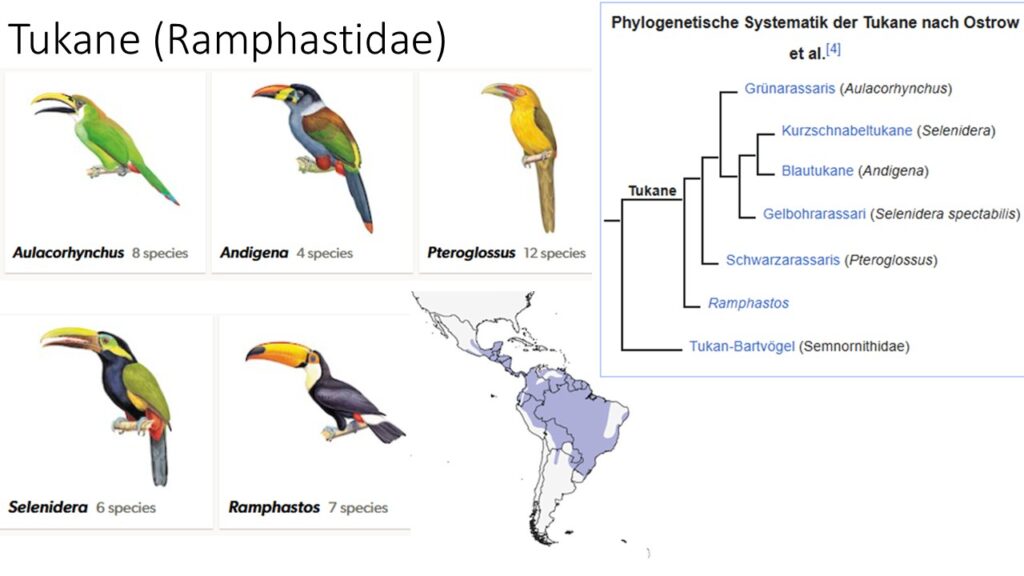 Tukane gelten in unseren Breitengraden als die typischen Tropenvögel und wurden in der westlichen Welt als Werbefigur genutzt. In den 1930er und 40ern nutzte die Marke Guinnes einen Tukan als Werbefigur, Kellogs nutzt einen Tukan für seine Marke Froot Loops und Haribo für ihr Produkt Tropifrutti. Generell: viele Marken – ob Fruchtsäfte, Kosmetikprodukte oder Reiseanbieter nutzen, wenn sie nicht auf Papageien zurückgreifen, oft einen Tukan als Werbefigur, wenn etwas Tropisches verkauft werden soll. Und tatsächlich: Tukane sind, was ihr Aussehen betrifft, sehr imposante Vögel (Winkler et al. 2015, 2020a, Del Hoyo et al. 2002, Del Hoyo 2020).