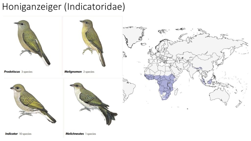 Winkler, DW, Billerman, SM; Lovette, IJ (2020f). Honeyguides (Indicatoridae), version 1.0. In Birds of the World (S. M. Billerman, B. K. Keeney, P. G. Rodewald, and T. S. Schulenberg, Editors). Cornell Lab of Ornithology, Ithaca, NY, USA. https://doi.org/10.2173/bow.indica1.01